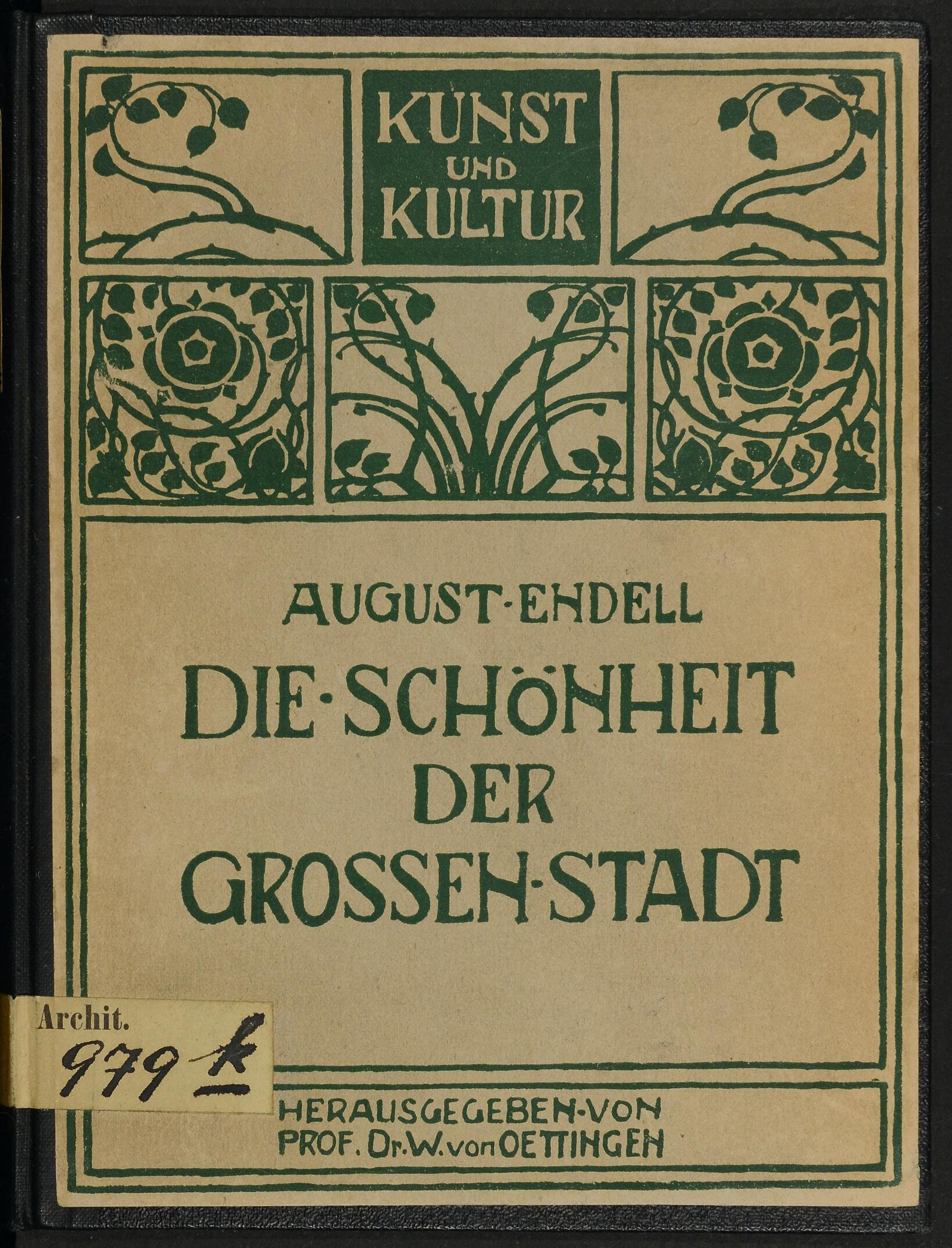 [1] August Endell, Die Schönheit der großen Stadt, Stuttgart, Strecker & Schröder, 1908, p. 67. Translation as cited in August Endell, « The Beauty of the Metropolis », translated by Zeynep Çelik Alexander, Grey Room, 2014, 56, p. 116–138, here p. 128 (doi:10.1162/GREYa00152).