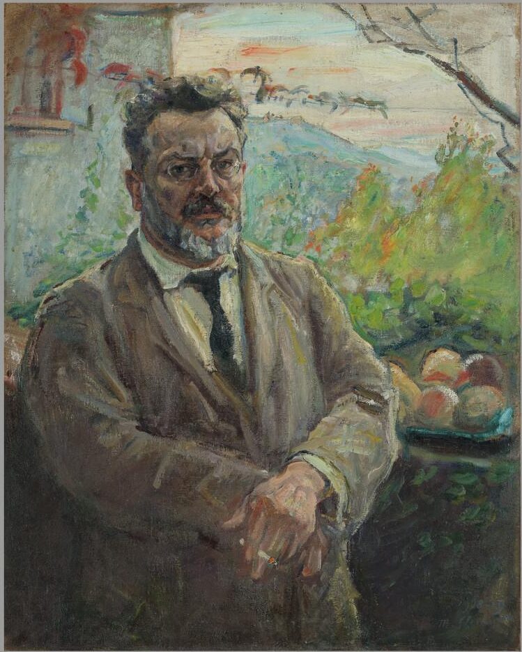 Max Slevogt, Autoportrait sur la terrasse de Neukastel, 1918-1919, huile sur toile, 95,5 x 75,5 cm, Saarbrücken, Saarlandmuseum, Moderne Galerie. Source : Bildarchiv Saarlandmuseum / Maaß, Raphael, CC BY-NC-ND-4.0.