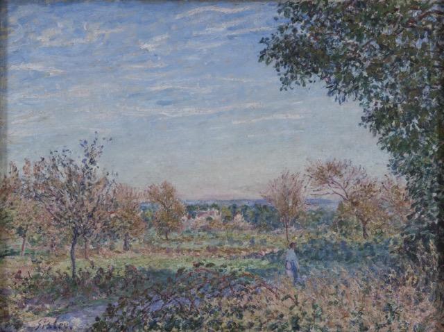 Bien que né à Paris et ayant réalisé toute sa carrière en France, Sisley n’obtiendra jamais la nationalité française, en dépit plusieurs demandes de naturalisation. Le flottement identitaire du peintre britannique se résout dans un attachement profond au territoire francilien. Parisien jusqu’à ses 30 ans, Sisley déménage successivement à Louveciennes (1870-74), à Marly-le-Roi (1875-77), puis à Sèvres (1877), avant d’arrêter son chemin dans le village de Moret-sur-Loing en 1881 : « Marché une fois par semaine, église fort jolie, vues assez pittoresques » écrit-il à Monet le 31 août 1881. Au même titre que Monet à Giverny ou Pissarro à Eragny-sur-Epte, le « déraciné » Sisley tisse une relation de plus en plus empathique avec ce lieu, qui est à la fois son motif et son environnement quotidien : « Je n’ai pas oublié la splendeur des arbres, des clairières, des rochers qu’il commentait si poétiquement, ni le récit de la vie des riverains dont il connaissait toutes les péripéties [6]» se souvient Gustave Geffroy, après une visite à Moret.