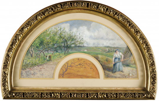 Camille Pissarro, Éventail : Côteaux de Chaponval, vers 1879 ?, gouache et pastel sur soie, Paris, musée d’Orsay conservé au musée du Louvre. Source : RMN-Grand Palais (musée d'Orsay) / Tony Querrec.