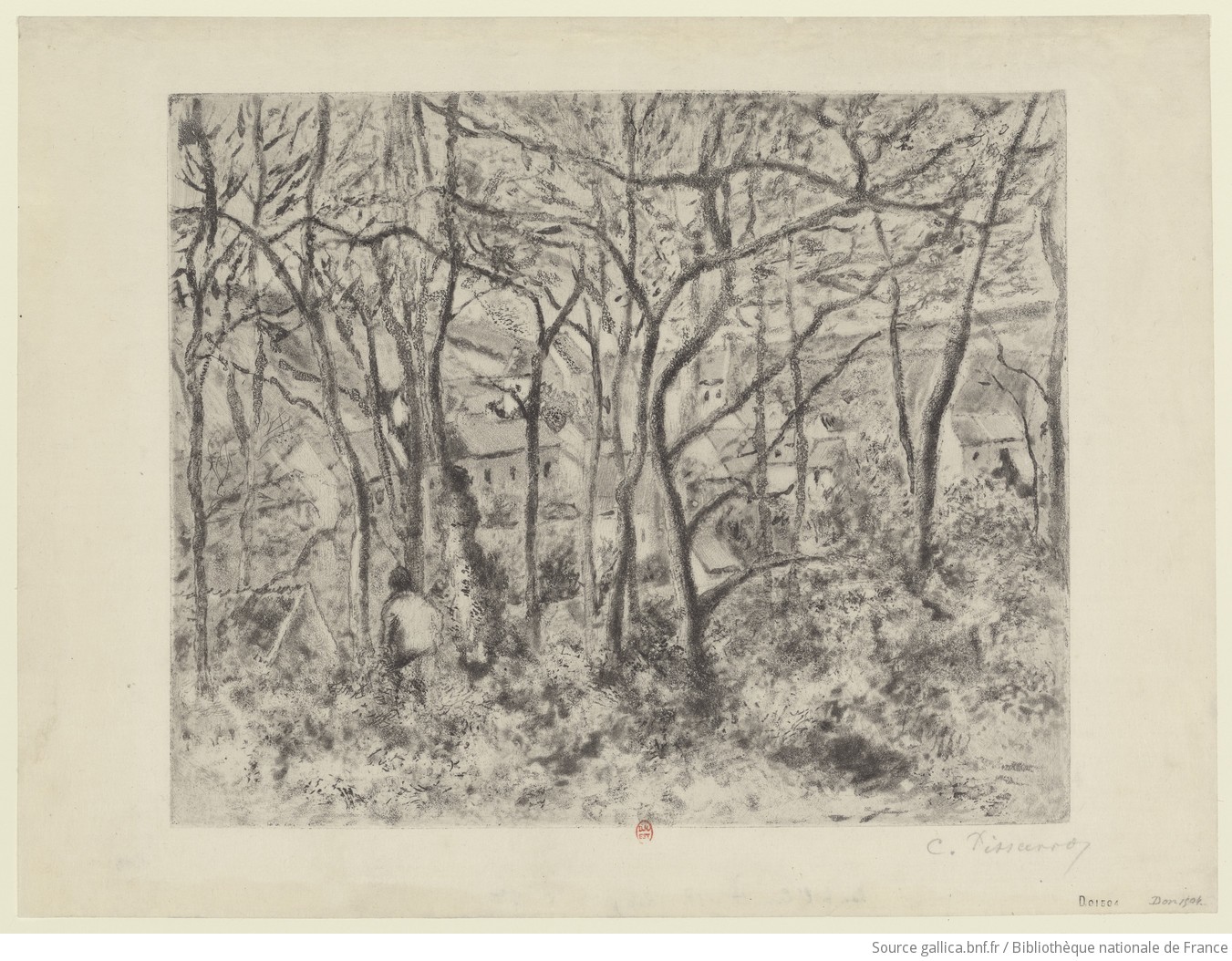 Camille Pissarro, Paysage sous bois à l’Hermitage Pontoise, 1879, eau-forte et aquatinte sur papier japon, 5ème état, Paris, Bibliothèque nationale de France, département Estampes et Photographie. Source : gallica.bnf.fr.
