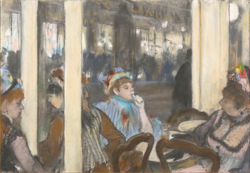 Edgar Degas, Femmes à la terrasse d'un café, le soir, 1877, pastel sur monotype, 41 x 60 cm, Paris, musée d'Orsay. Source : RMN-Grand Palais (Musée d’Orsay) / Hervé Lewandowski.