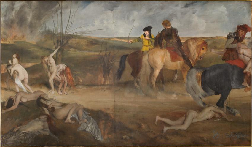 Edgar Degas, Scène de guerre au Moyen-Âge, vers 1865, huile sur toile, 85 x 147 cm, Paris, musée d'Orsay. Source : RMN-Grand Palais (musée d'Orsay) / Gérard Blot.