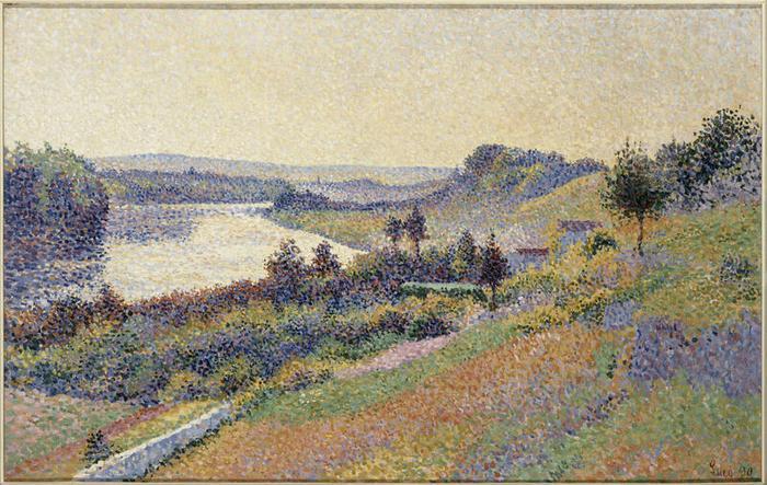 Luce découvre la peinture de ses aînés impressionnistes lors de l’exposition de Claude Monet à la galerie de la Vie moderne en 1880[5], puis à la huitième exposition impressionniste en 1886[6]. Dans les rares paysages peints vers 1885 sur les quais de Seine ou à Lagny-sur-Marne, qui ont été conservés, cette influence est manifeste : la touche plus légère atteste d’une attention accrue portée au rendu atmosphérique et à la lumière et sa palette s’éclaircit[7]. Stimulé par ses rencontres avec les jeunes peintres Émile Cavallo-Péduzzi et Léo Gausson, Luce découvre également les théories scientifiques d’Eugène Chevreul et les œuvres de Georges Seurat, en 1886. L’année suivante, il expose à la Société des Artistes Indépendants et est remarqué par Camille Pissarro qui l’introduit auprès de Félix Fénéon, Georges Seurat, Charles Angrand[8], Henri-Edmond Cross et Paul Signac. Ce dernier lui achète La Toilette (Association des Amis du Petit Palais, Genève).